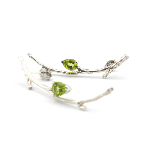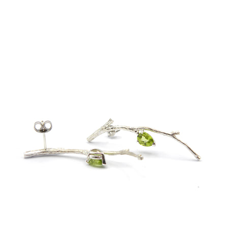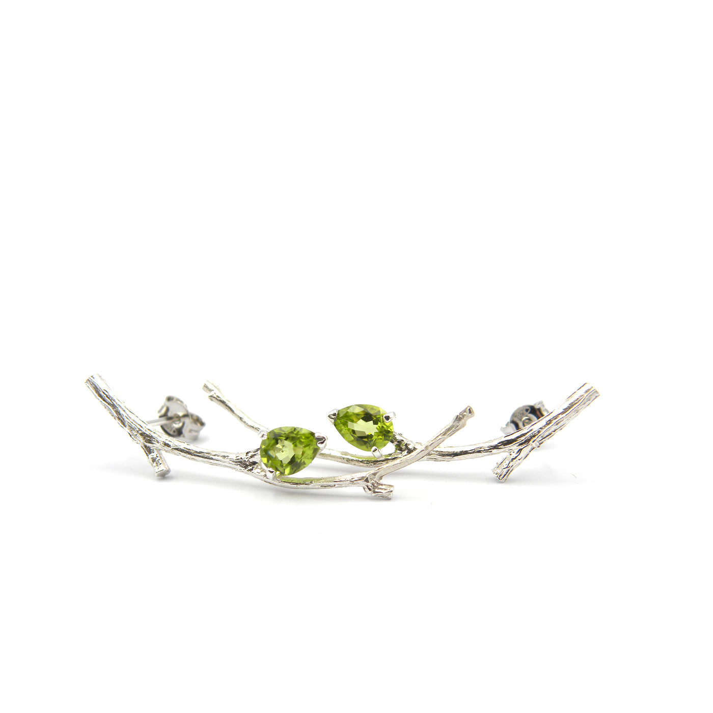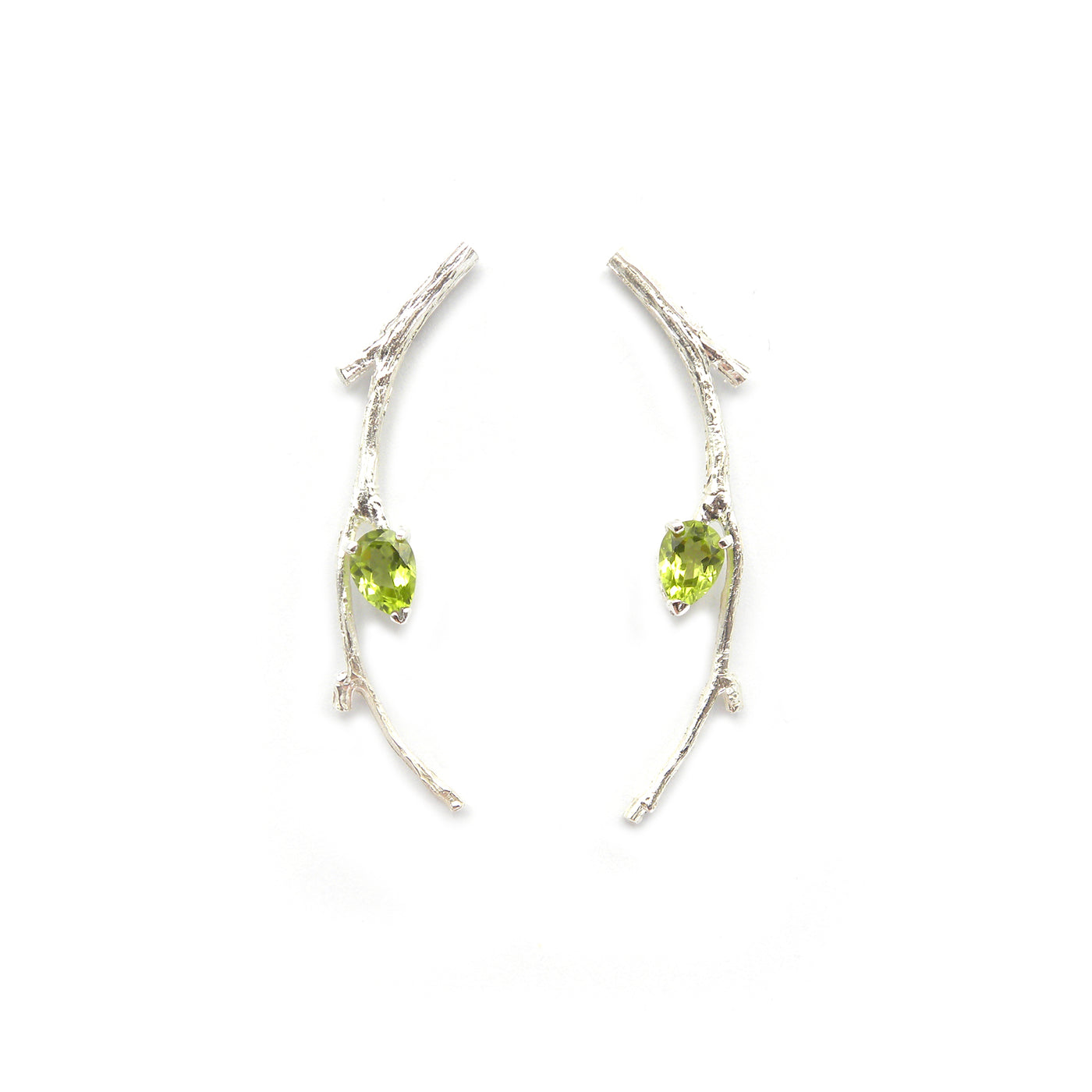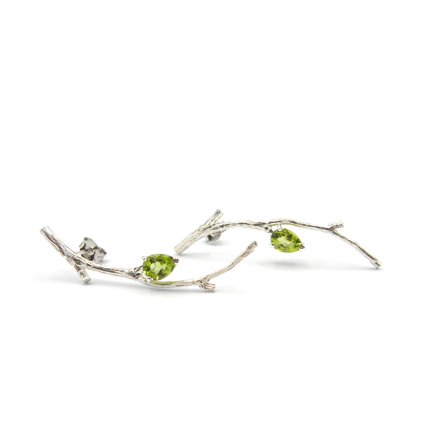Hyperrealistic silver earrings with 6x4 mm peridot drops.