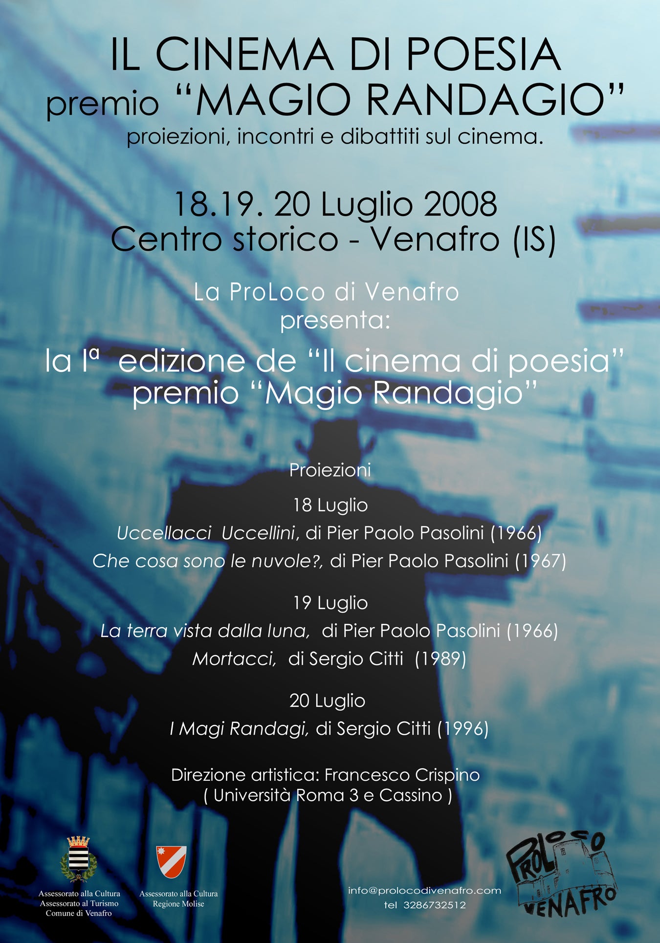 Il magio randagio is a sculpture created on the occasion of the competition of the Film Festival of poetry "Il magio randagio", 2008 and 2009 edition organized by the Pro-Loco of the Municipality of Venafro (IS) and supported by the Department of Culture of the Molise Region and by the Department of Culture and Tourism of the Municipality of Venafro itself. The patinated bronze sculpture is about 15 cm high and fixed on a painted wooden base. The work was created in a circulation of three copies for 2008 and two for 2009 and donated to the winners of the competition by the organizing bodies.