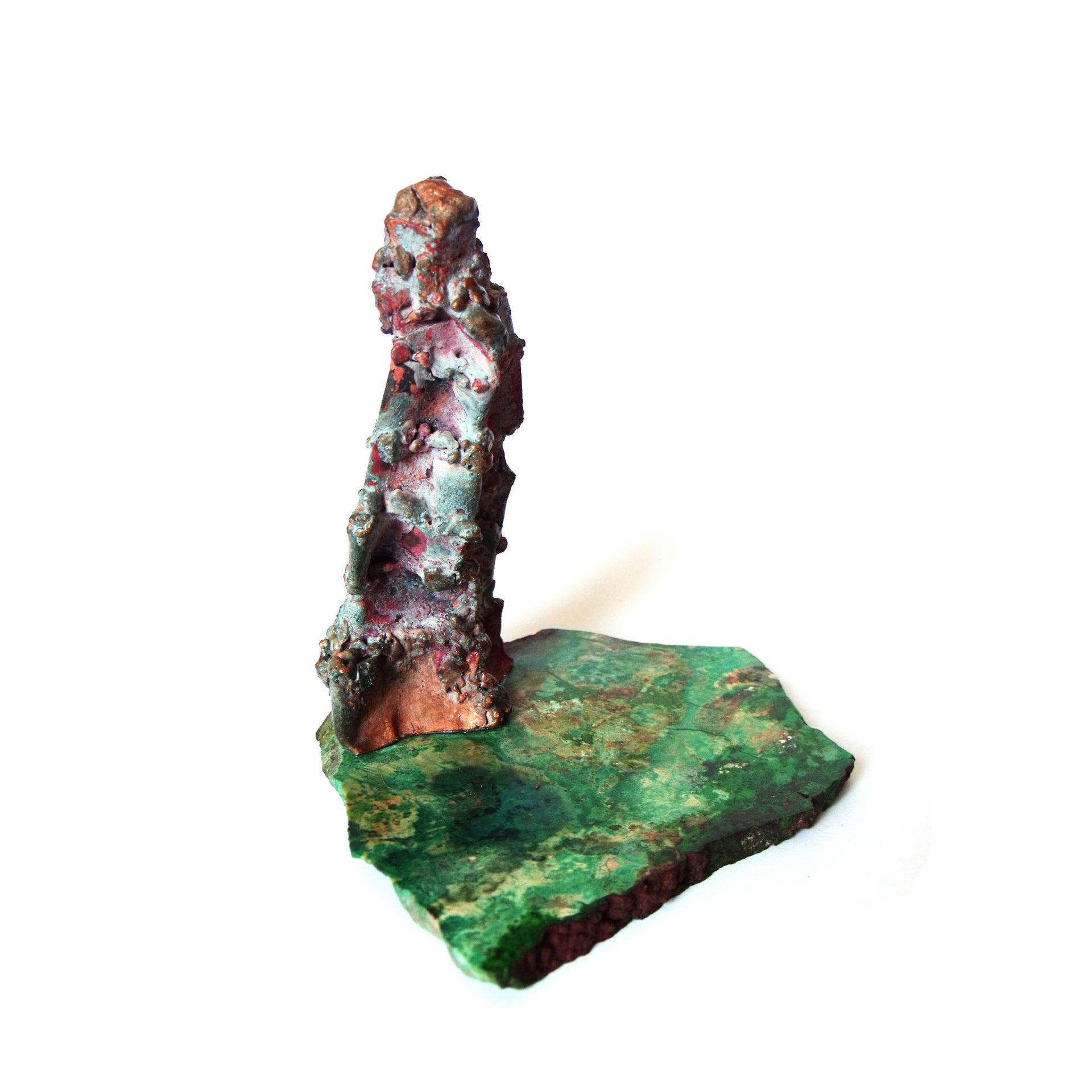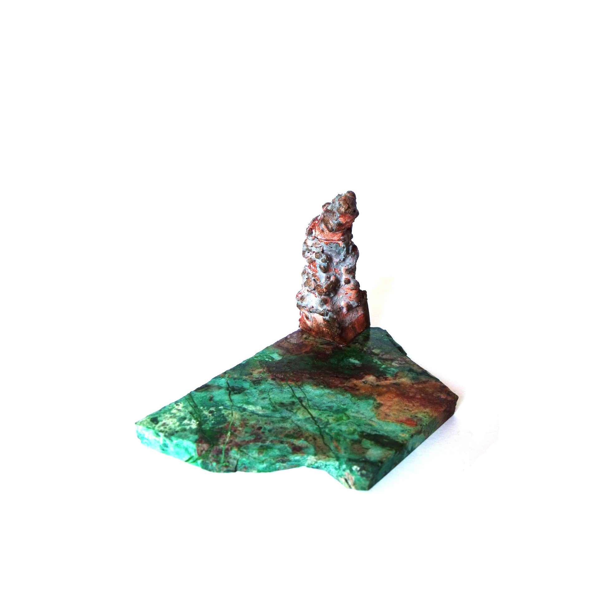 The IMPOSSIBLE TOWERS are a small series of copper structures that refer to the aesthetics of the towers, usually of considerable size and massive structures, used for different but defensive functions, from fortification to insulation. Here proposals in formal antithesis, made in very small dimensions, from a maximum of 10 cm in height to a minimum of 6 cm, created with strips of copper assembled without input material, favoring the fusion of the same, to accentuate the material finish and favor the oxidation of the undercuts generated through the process. The structure obtained is anchored to marble slabs with intense colors. Imagined and made without access points to encourage the comparison of the observer to evoke claustrophobia in the possibility of inhabiting them.