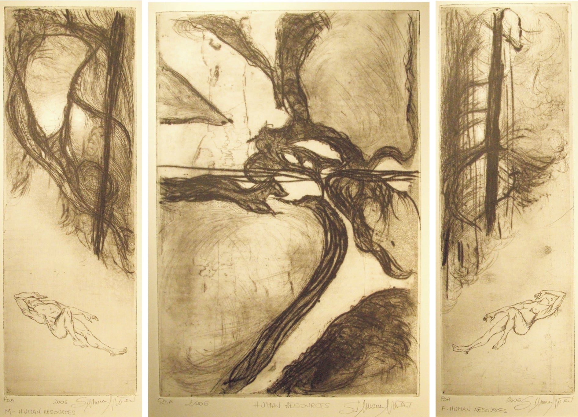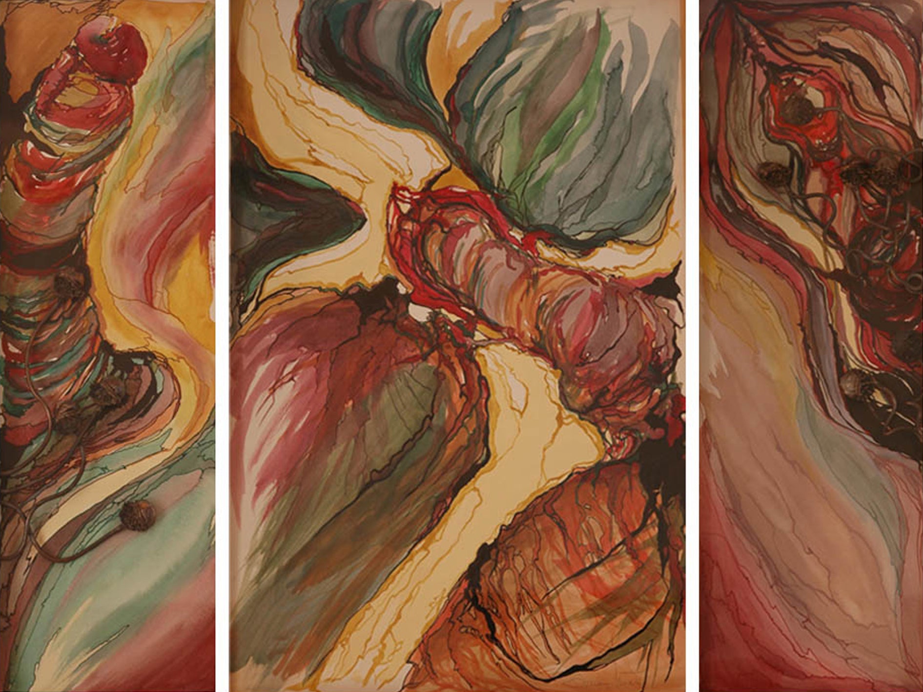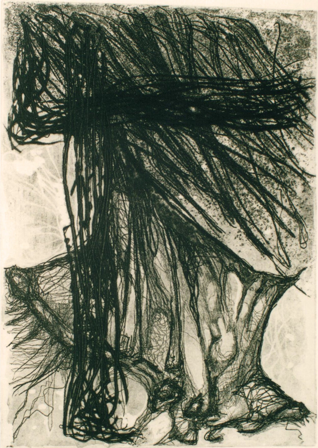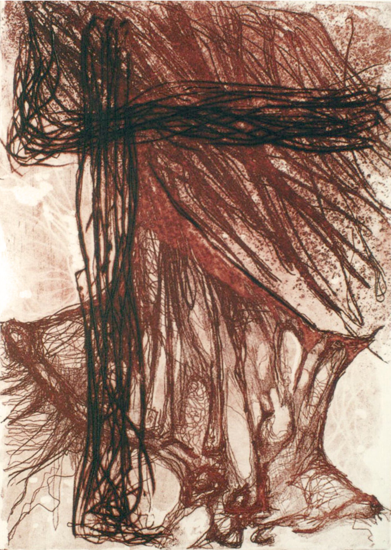 His chromatic and structural impressions, clearly depositories of intimate anatomies, are organic hypotheses of depth in the attempt at existential paradoxes since from the experiences of real matter he has learned an immediate and almost violent way of approaching the copper plate, the sheet or the metal. The result is a filamentous and extended stretch as if bodies and things were made of natural fibers in perennial metamorphosis.