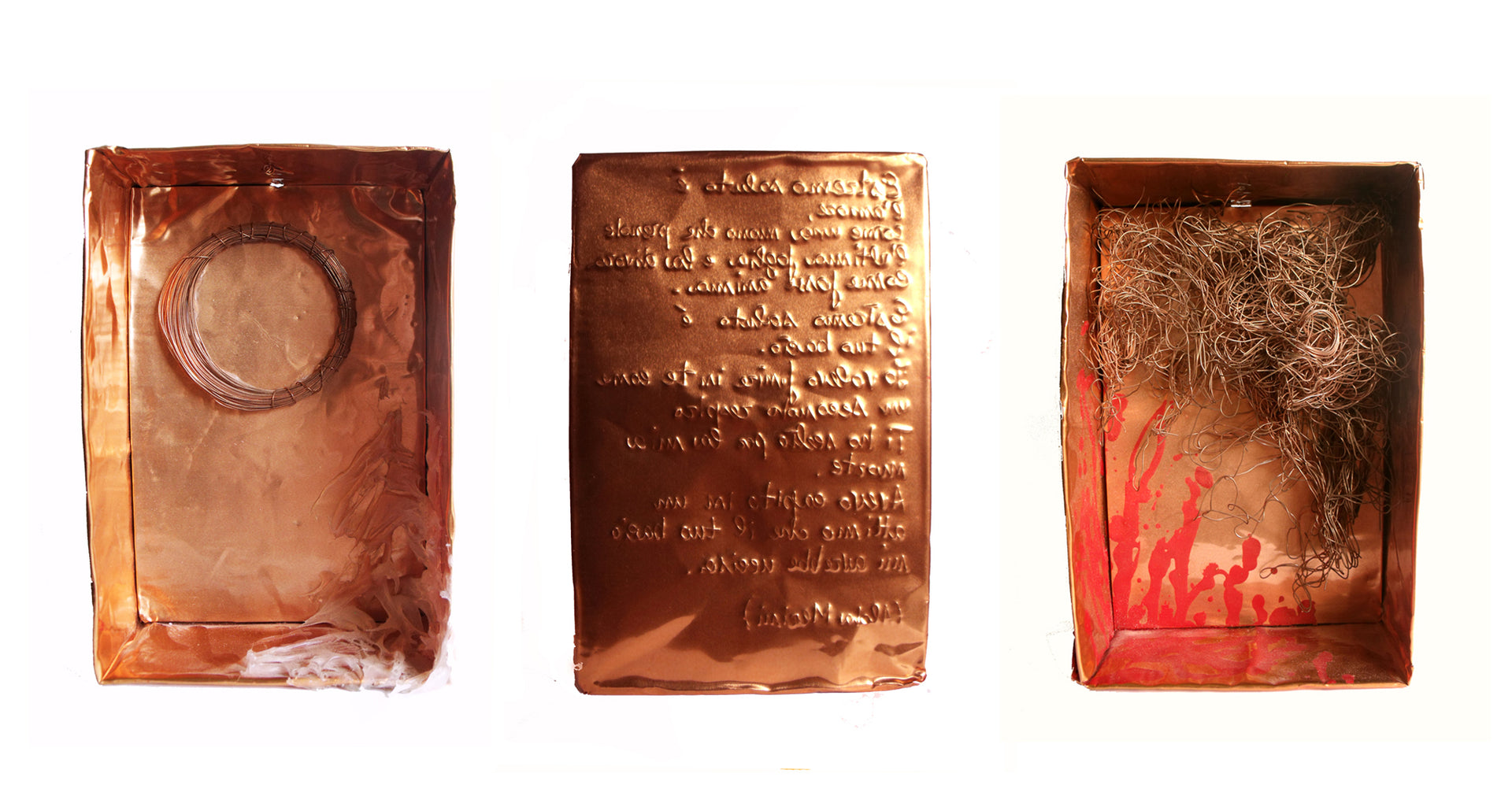 It is an immaterial genesis that finds an instrument of expression in intaglio, understood as an infinite field of experimentation on the surface and on the plane, and also in the installation where the physicality of the forms acquires three-dimensionality and presence taking charge of the memory of the eye. This relationship between the objects of nature, objects sought and found by chance, the lifeblood of their mineral biology and the heat of color and painting, embodied in the sign in disintegration or in perennial osmosis, leads to a short-circuit between body-involvement-place of collective intelligibility. And since this place is a public space of fruition, the concept of the wearability of the works also returns, since many works also arise from the experience of Materi as jewels designers.