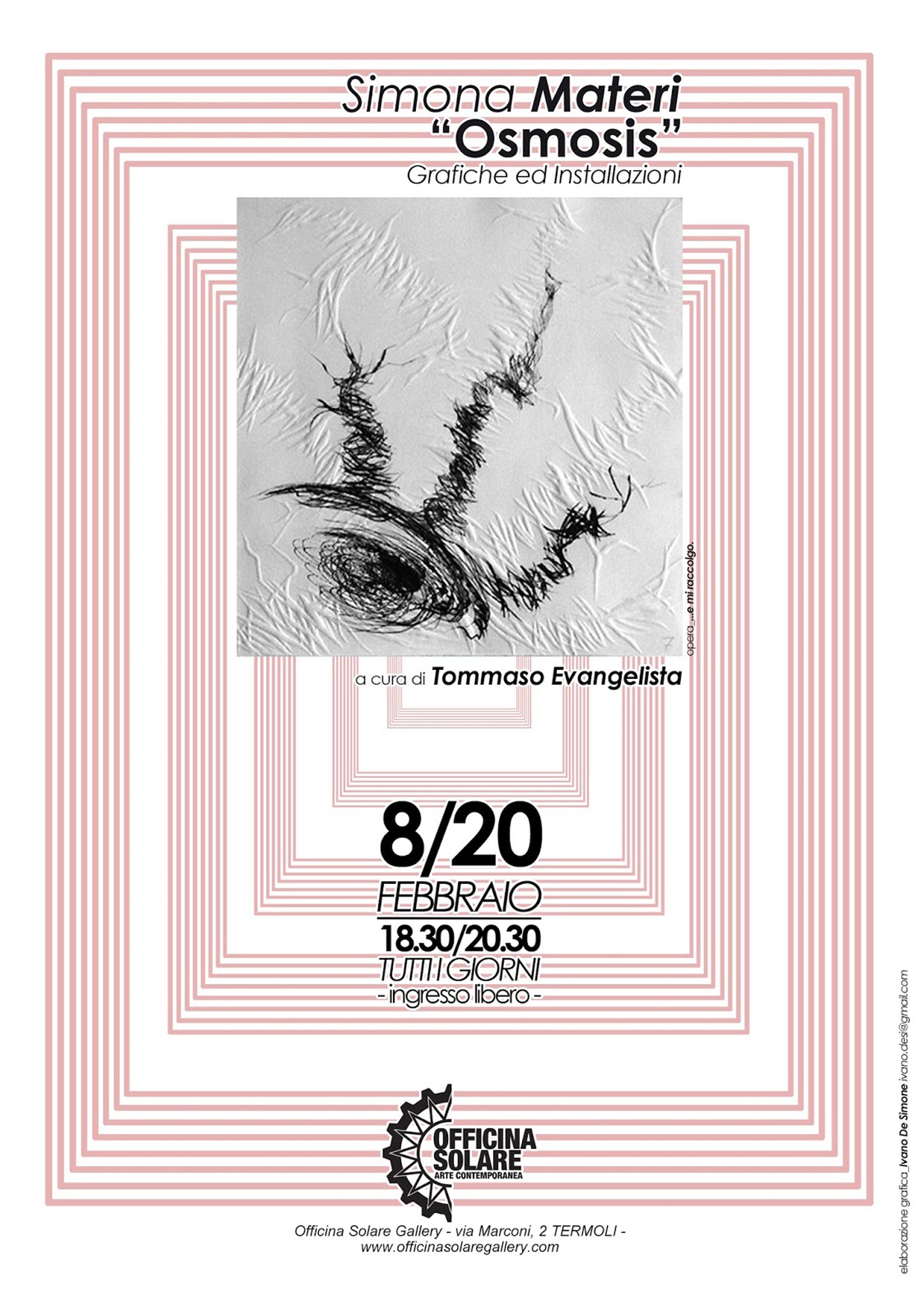Osmosis is the title that the critic and curator Tommaso Evangelista wanted for a collection of some of my works from the previous ten years, in a small restrospective presented all' Officina Solare Gallery di Termoli (CB).