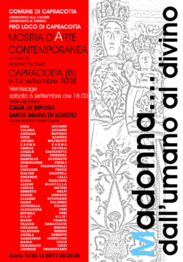 The installation was presented at the Matese Friend Festival in 2007 and in 2008 at the VENAFRANDO collectives curated by ProLoco at Palazzo de Utris in Venafro (IS), "s’ì fosse terra, com’ì sono e fui" curated by G. Berchicci in Chiauci (IS) and for the collective Madonna…from human to divine curated by A. Picariello di Capracotta (IS)