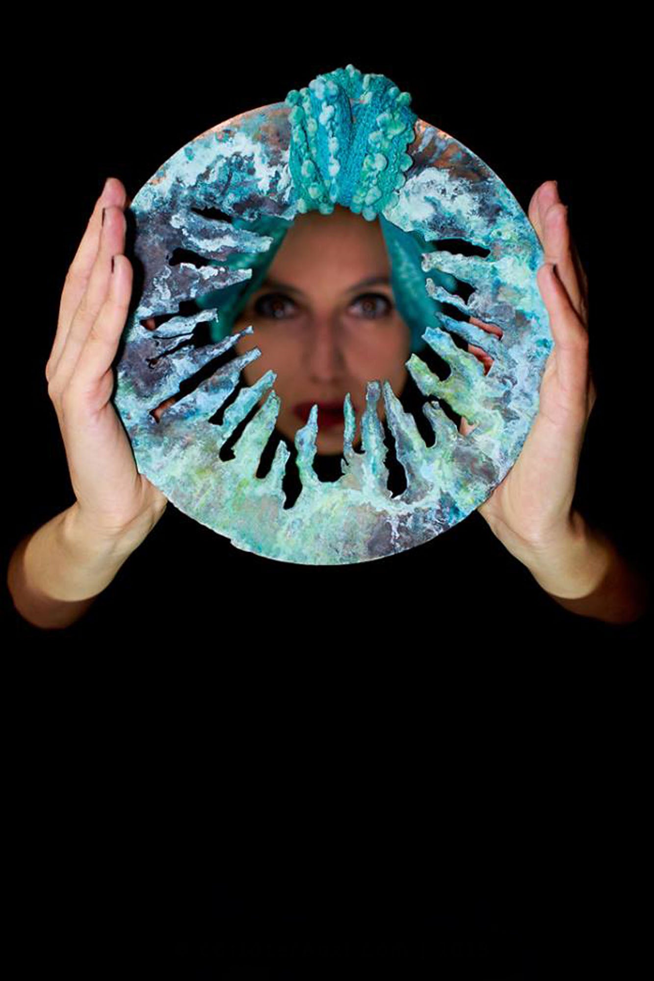 The project investigates the concept of imaginative mapping. . The green of the oxides refers to the physical maps. The map made does not exist in reality. Wearing a map is impossible unless you want to transfer it into your own interior. To transfer an experience within one's own consciousness, to close oneself to the influences of the external world, to acquire greater intensity of spiritual life.