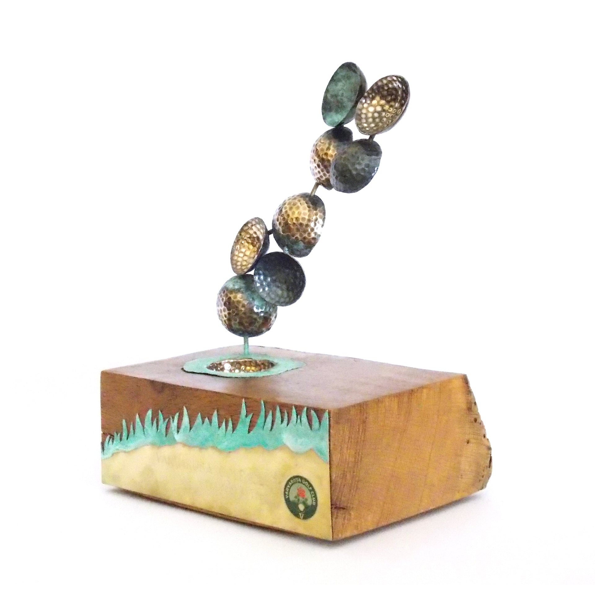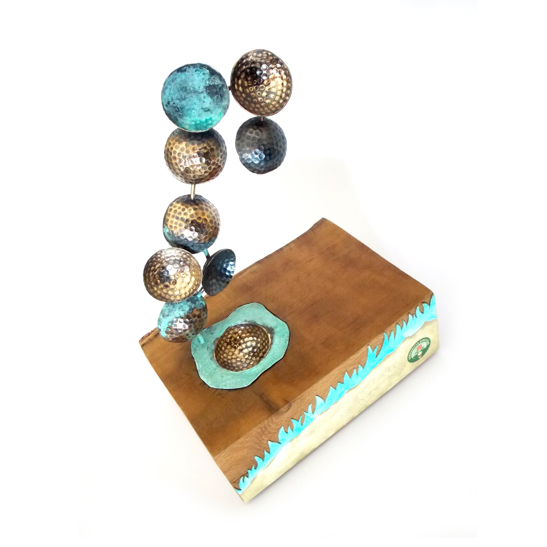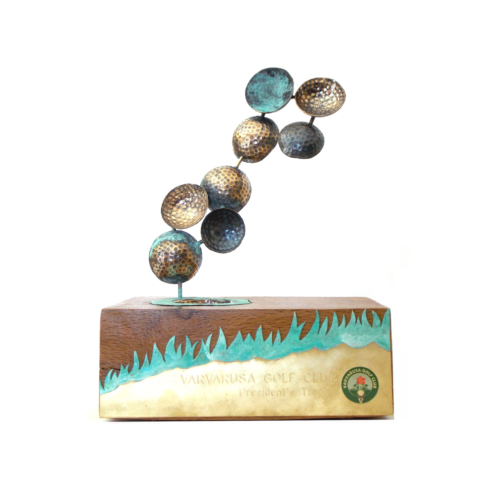 The patinated bronze sculpture with a beech wood base was created for the Varvarusa Golf Club in Filignano (IS) for the 2019 international nine-hole tournament. Every year, the president of the Varvarusa Golf Club officiates the passing of the prize from the current champion to the next one.